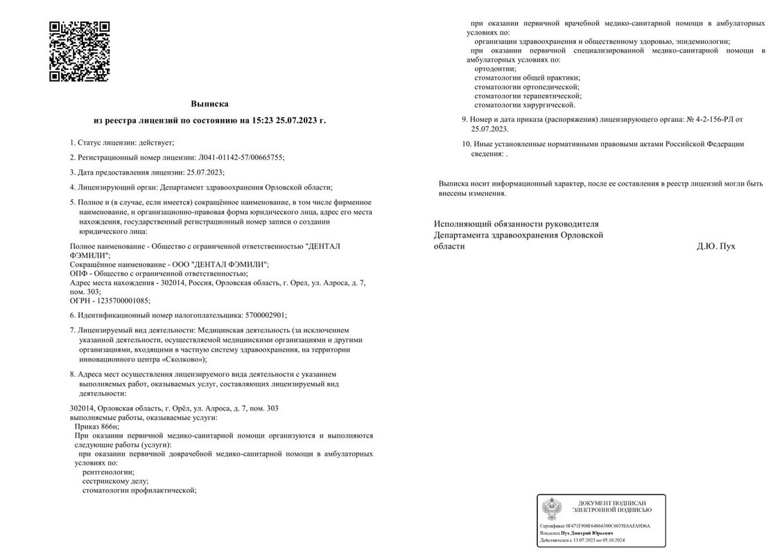 Подробнее о компании ДЕНТАЛ ФЭМИЛИ